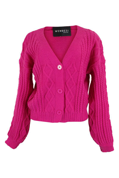 Cable crop cardigan (31011/PinkCerise)