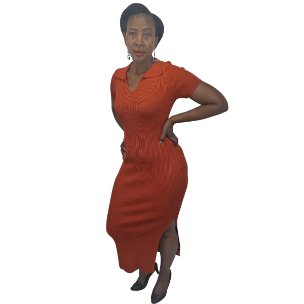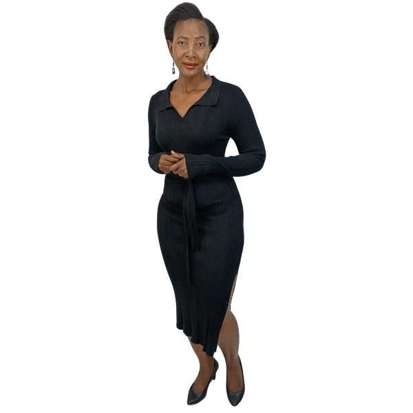 Ribbed knit cross over dress (8809/Black)