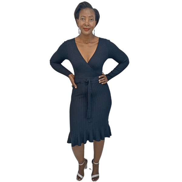 Ribbed knit cross over dress (8809/Black)
