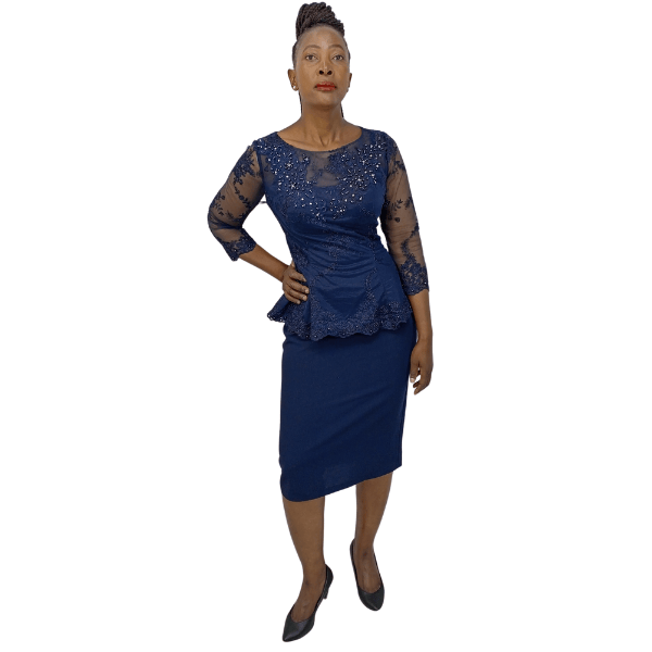 Jaquard Peplum Dress (2199) (2199/Navy)