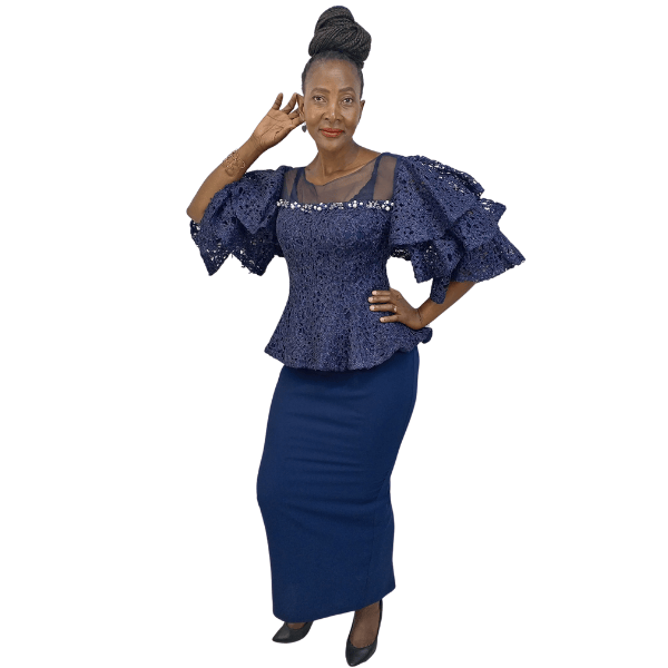 Jaquard Peplum Dress (2199) (2199/Navy)