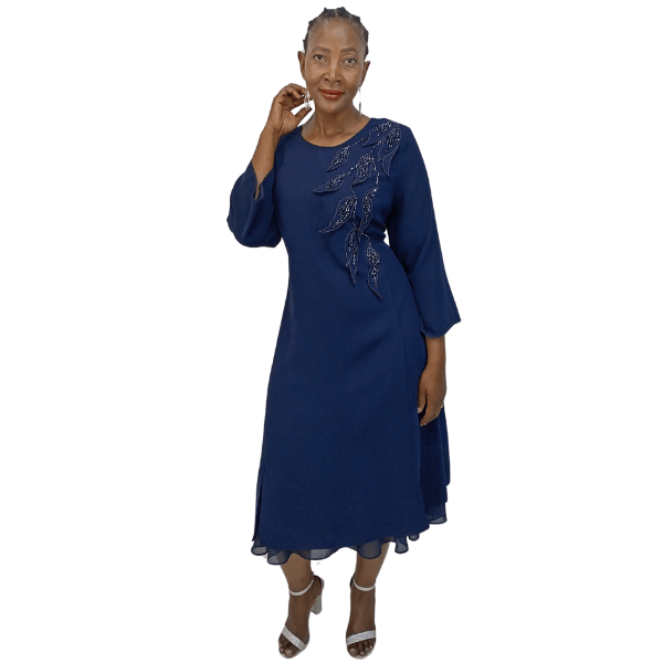 Leaf motif cocktail dress (1996111/Navy)