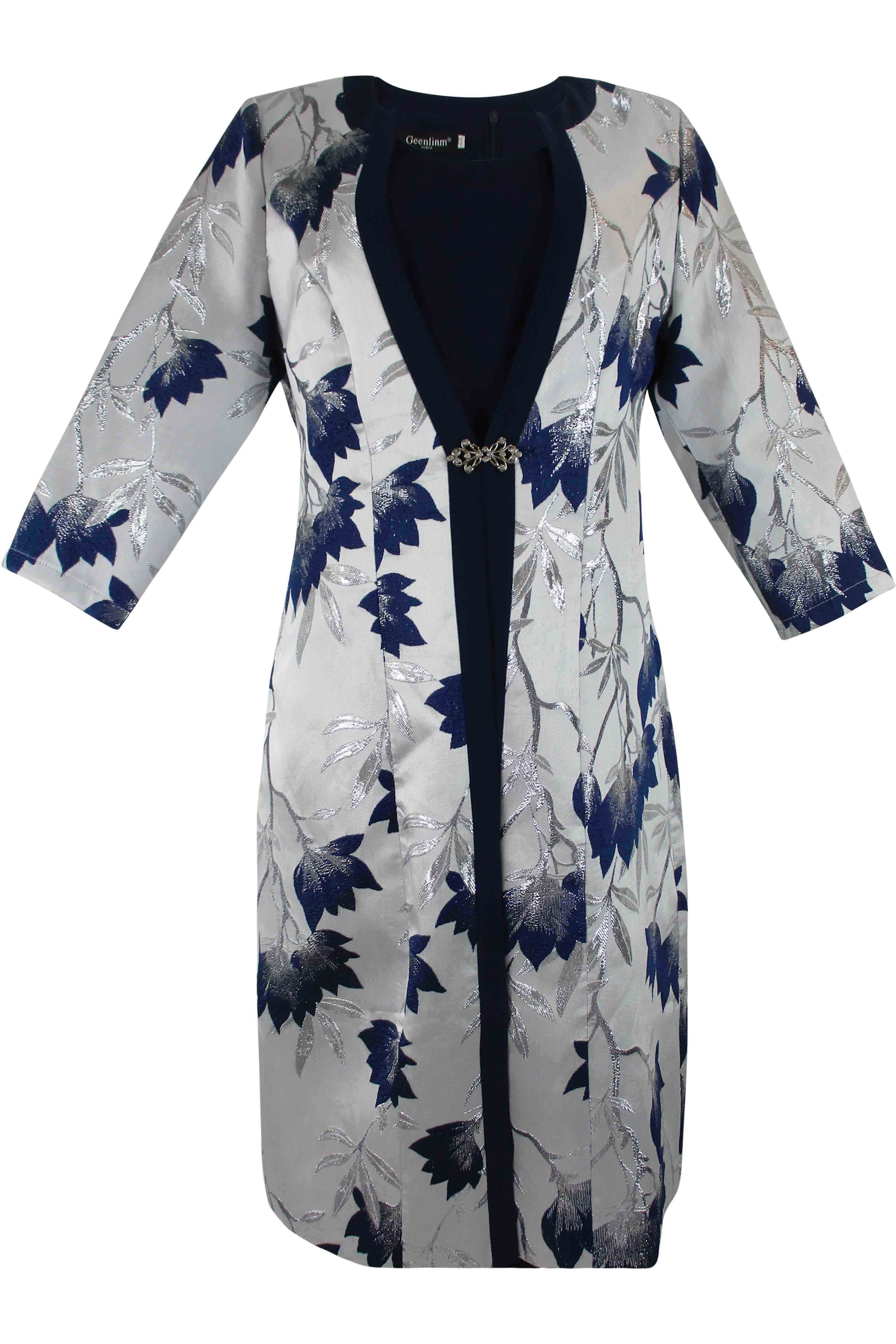 490/Navy/ Leaf Print Dress & Jacket (490)