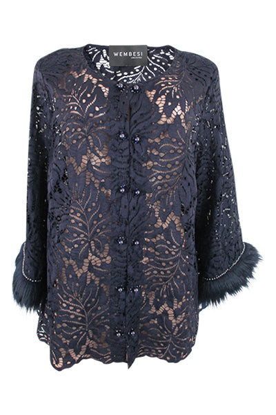 4830/Navy/ Lace Jacket with Fur Trim (4830)